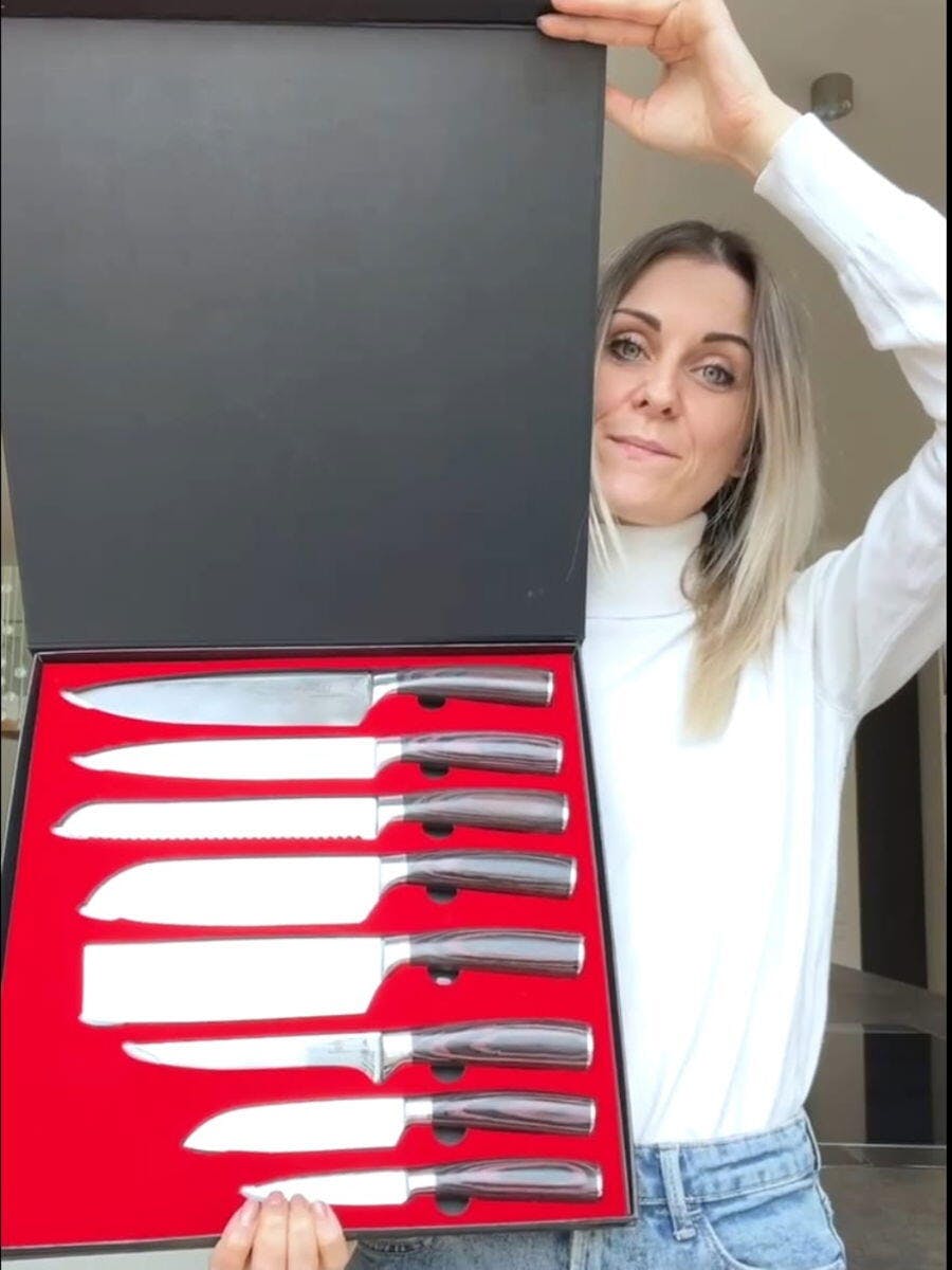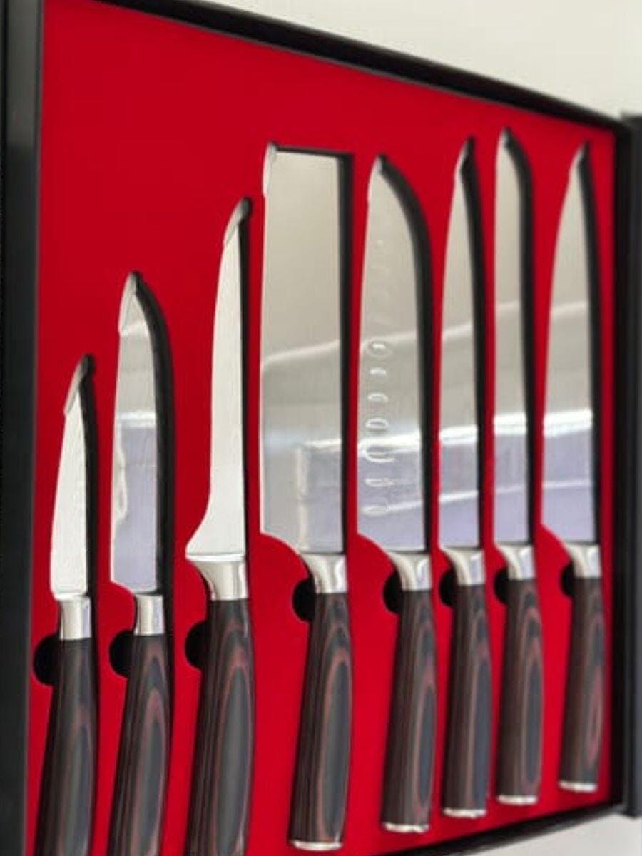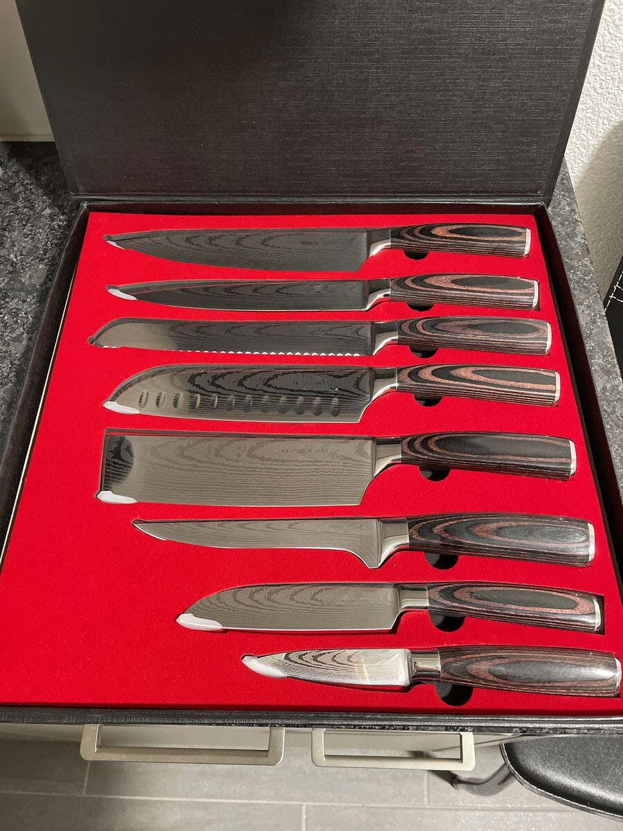 Felix Kraus Die Messer sind ausgezeichnet. Einfache Handhabung und Anwendung, sowie ein robustes Aussehen. Ich habe ein Set gekauft und denke darüber nach, noch zwei zu kaufen, um sie an nahe Verwandte zu verschenken, die vom Design und von der Qualität des Produkts begeistert waren.